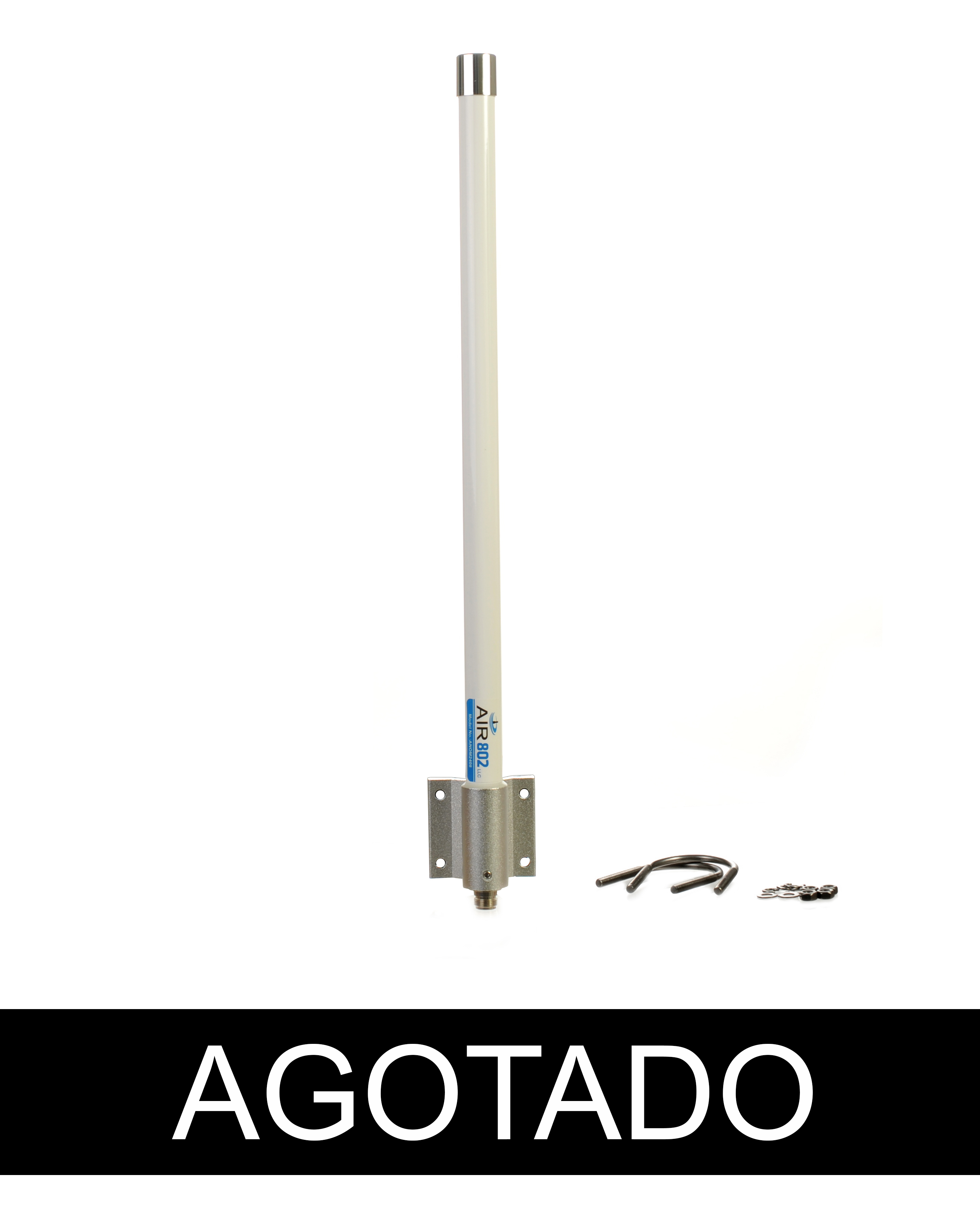 Antena omnidireccional ANOM2408, ideal para la transmision de datos WIFI y Bluetooth, en la banda de los 2.400 MHz, con una ganancia de 8 dBi, ha sido diseñada para montajes de mastil con abrazadera en U y/o para muro atornillable.