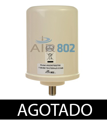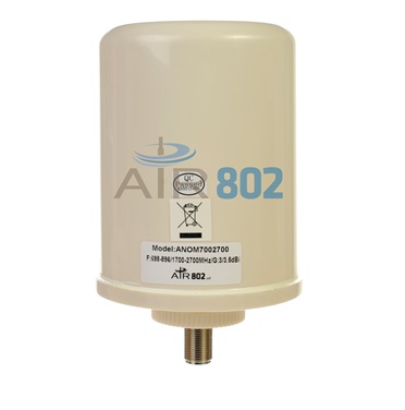 ANOM7002700 modelo AIR802 es una antena de montaje en el techo omni-direccional multibanda que cubre 698-896 MHz con 3 dBi de ganancia y entre 1700 y 2700 MHz de la ganancia de banda de hasta 3,5 dBi de ganancia. Esta antena se ha diseñado principalmente para aplicaciones con repetidores o amplificadores celular. Sin embargo, también es útil para Wi-Fi, scada, radio móvil y otras aplicaciones. Cuenta con un conector jack hembra-N y su color blanco permite que se integre a la perfección con las tejas del techo. La instalación requiere la apertura de un pequeño agujero a través de la placa de techo sólo lo suficientemente grande para acomodar el conector N