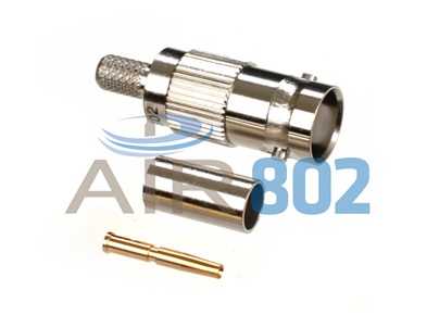 AIR802 ® modelo CN2BNCF es un conector BNC o conector coaxial hembra de tamaño para adaptarse RG58, AIR802 ® CA195, Times Microwave LMR195 ® y Belden ® 8240/8219 tamaño de cable.
