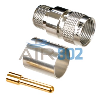 Este conector ® AIR802 es un UHF Plug (macho) o conector de estilo SO-239 prensado para cables AIR802 ® CA600, tiempos de microondas LMR600 ® o similares.
