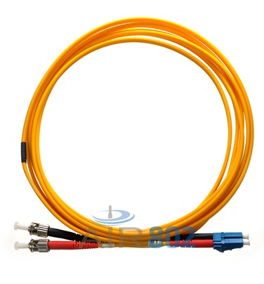 ST al LC duplex UPC cable de fibra óptica, cable de parche es de 6 metros (19.68 pies) de largo con fibra monomodo 9/125 micrones en un humo bajo cero halógeno 3mm (LSZH) chaqueta amarilla.