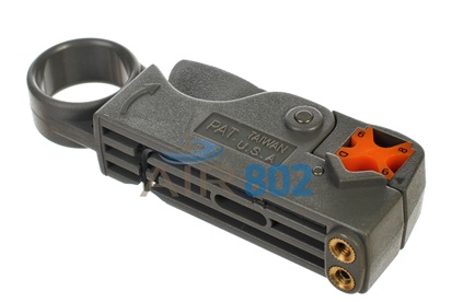 Herramienta stripper de grado profesional para cables coaxiales. Esta herramienta stripper es ajustable y opera con dos cuchillas las cuales son reemplazables. Nuestro modelo de cuchillas reemplazables es TL-BLADES01.