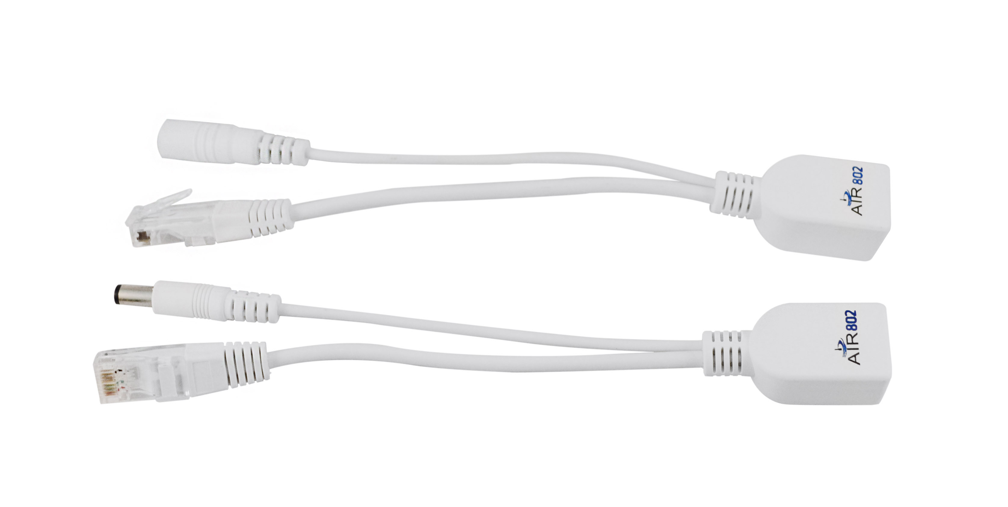 AIR802 ® ha desarrollado kits de Power-over-Ethernet (PoE) pasivos o conjuntos con varios conectores de DC de tamaño. Este dispositivo proporciona una solución de bajo costo para la entrega de poder sobre el cable de red. Este esquema permite poder ser prorrogados en redes 10/100 los pares no utilizados, repuestos de un cable de red CAT 5, CAT 5e o CAT 6 Ethernet. La fuente de energía podría ser la fuente de alimentación que venía con el punto de acceso inalámbrico, cámara de video vigilancia IP, etc., o puede ser otra fuente de alimentación.